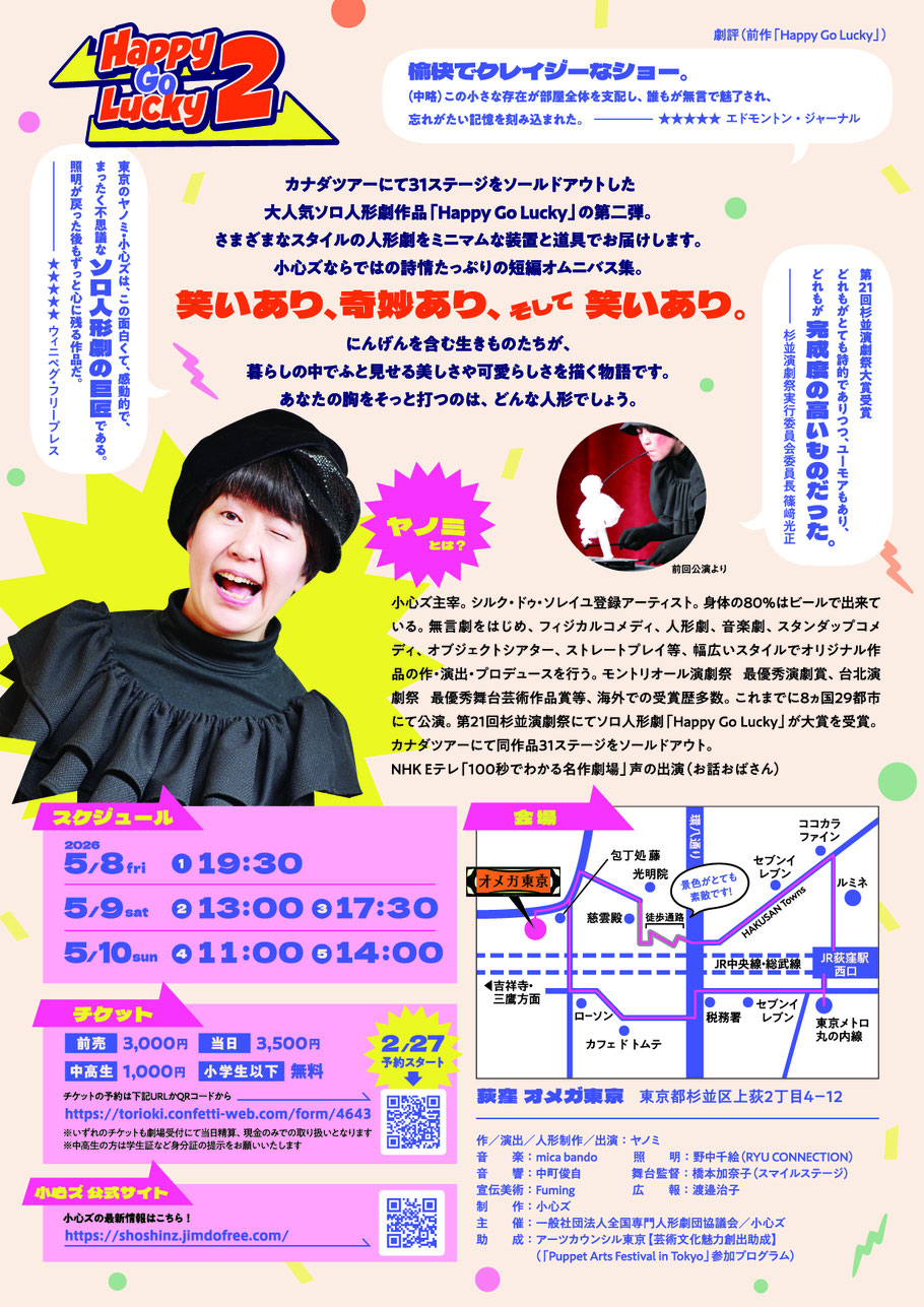 北米にて31ステージをソールドアウトした、ソロ人形劇「Happy Go Lucky」の第二弾!